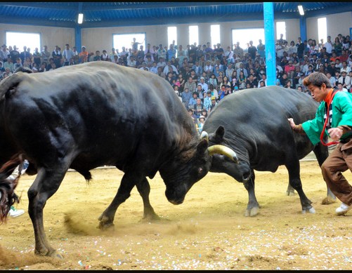 日本鹿儿岛举行斗牛大会 吸引大批居民(图)
