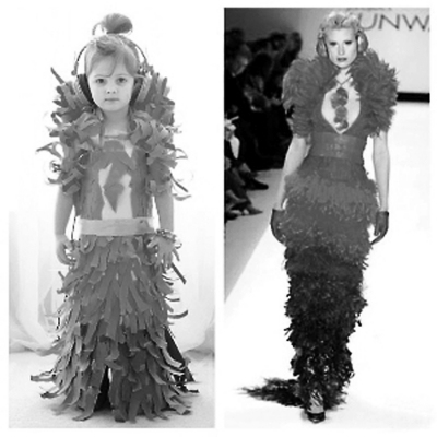 贝克汉姆家的萌小七、阿汤哥家的小苏瑞……时尚大潮中,娃娃军团正当红。有个平民家庭出身的4岁小姑娘,不但因各种美装照虏获大批粉丝,还吸引大牌杂志《时装》向她伸出橄榄枝。和“星二代”不一样的是,这个小姑娘穿的并非什么大牌或定制,而是和妈妈一起用纸做成的衣服。