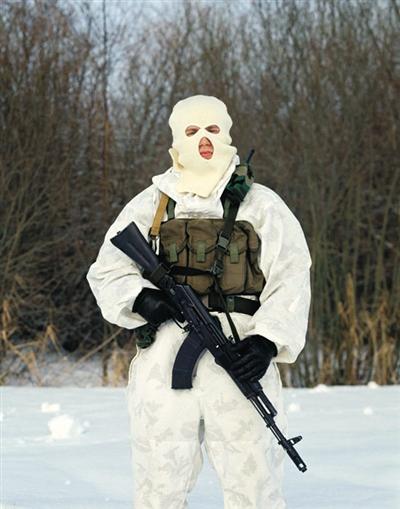 一名正站在雪地中的俄罗斯阿尔法特种部队成员。