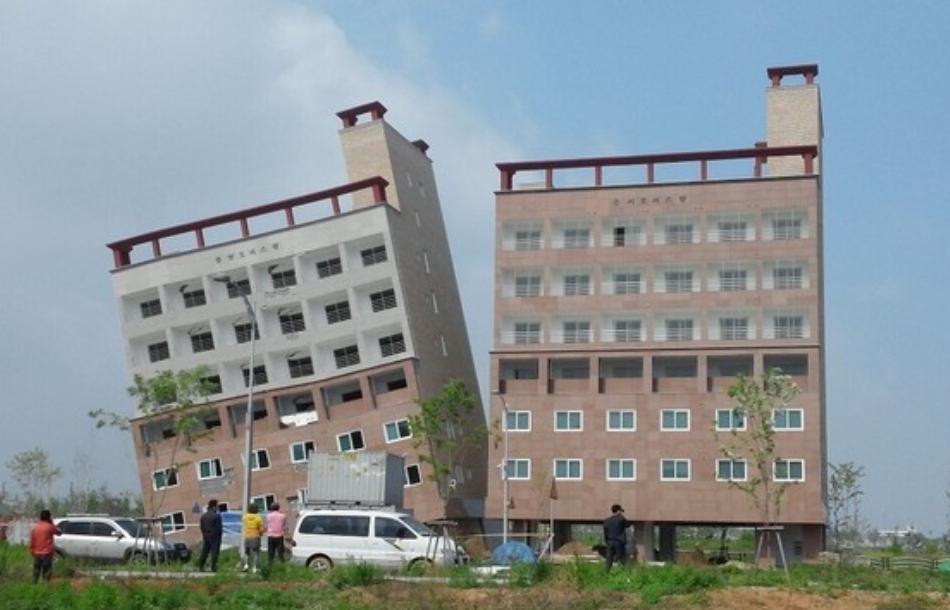 韩国现“楼歪歪” 新建居民楼倾斜30度(图)