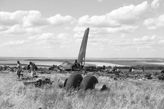 6月15日,乌克兰卢甘斯克,坠机现场。14日凌晨,乌克兰一架伊尔-76军用运输机在乌东部卢甘斯克机场附近被反政府武装击落,机上至少有49人。CFP供图