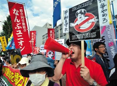 1日,日本首相官邸前,日本民众举行抗议活动,反对解禁集体自卫权。