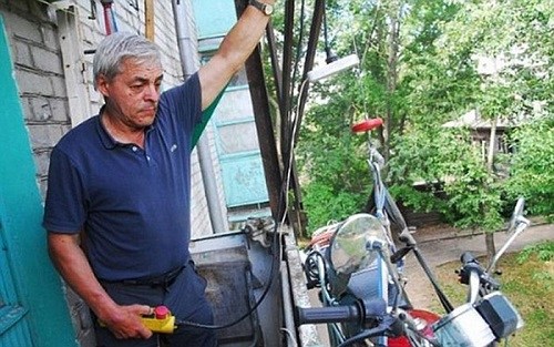 据英国《每日邮报》7月27日报道,俄罗斯下诺夫哥罗德 (Nizhny Novgorod)市56岁男子鲍里斯·法利霍夫(Boris Farihov)想出一个晚上防止摩托车被偷的好方法:利用绞车将心爱的摩托车吊在三楼窗外。