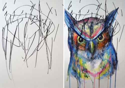 加拿大艺术家将2岁女儿涂鸦修改成精美画作(图)