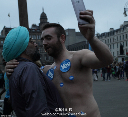 据英国英中时报9月19日微博消息,尽管离苏格兰独立公投最终结果宣布还有一段时间,但目前在苏格兰一些地方,Better Together阵营和Yes阵营已同时开始庆祝狂欢。