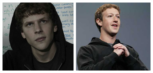 杰西·艾森伯格因在《社交网络》里扮演了“Facebook”创始人马克·扎克伯格而获得了奥斯卡提名。两人不仅外表相似,就连他们的姓也类似。