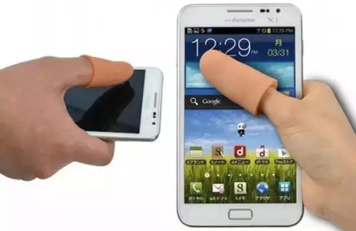 现在的手机屏幕越来越大了,而一些妹子的手指却没有那么长。为了够着远方的屏幕,一些人不得不两手并用。当然,解决这个问题,难不倒日本民众。他们发明了懒人手指,只要戴上了,就能想点哪里点哪里了。
