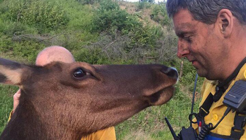 美一幼年孤鹿拥抱消防员惹人怜 网友:勿猎杀驼鹿