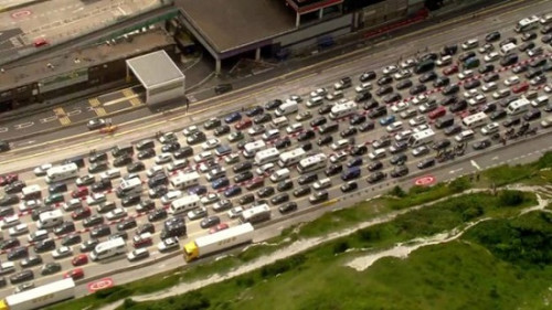 多佛港的官员称,堵车的主要原因是法国方面加强安检,而且缺乏安检人员。英国肯特郡通往多佛港的几条主要公路均出现长达十几公里的堵塞。