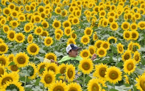 盛夏好光景:日本“向日葵节”开幕 遍野金黄(图)