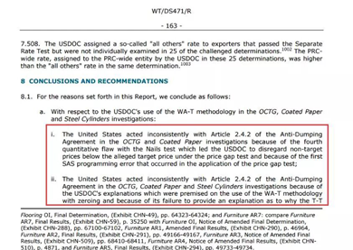 例如,在对中国的油井管、铜版纸等产品展开反倾销调查的过程中,美国商务部认定中国企业存在“目标倾销”行为。一旦认定“目标倾销”行为,美国便会使用“归零”方法作为计算倾销幅度的依据。
