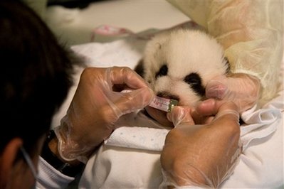 中新网10月22日电 综合报道,亚特兰大动物园的兽医21日给一只满月的大熊猫幼仔做体检。