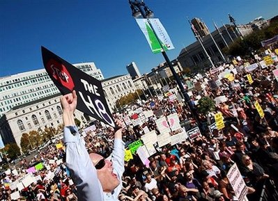 今年5月,加州最高法院以违反当地宪法的名义,推翻了早前一项禁止同性婚姻的法案,使当地的同性婚姻获得法律认可。但反对同性婚姻的团体开始推动禁止同性婚姻公投,引起广泛讨论和关注。11月4日,就在总统大选进行的同时,禁止同性婚姻的“8号提案”获得通过,获得了52%的赞成票。这一事件在加州产生的影响甚至超过了大选。第二天,数千名同性恋权利拥护者拥堵在洛杉矶西好莱坞的同性恋聚集区,挥舞标语,高喊口号。紧接着,抗议活动迅速在加州蔓延开来,几天后,超过2万人在洛杉矶、圣迭戈、萨克拉曼多以及其它地方举行和平示威,反对“8号提案”通过。