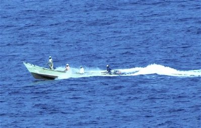 澳大利亚乘客Lynne Pincini告诉记者,“我听到三声枪响,然后船长告诉大家呆在船舱里趴下,这时船已经加速并且超过了他们。”