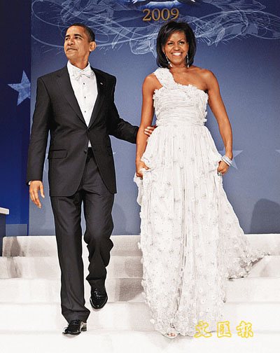 中新网1月22日电 美国总统奥巴马的就职礼吸引全世界目光,他的身边人同样惊艳全球。第一夫人米歇尔当日身穿破格的柠檬绿套装出席就职礼,赢得时装界赞誉;晚上再换上一袭纯白雪纺晚装,与丈夫领跳第一舞,艳压全场。据香港《文汇报》综合外电报道,两套服饰非大品牌出品,前者由古巴裔时装设计师托莱多设计,后者由纽约华裔设计师吴季刚操刀,尽显米歇尔眼光独到,亦体现了奥巴马政府不分种族的理念。