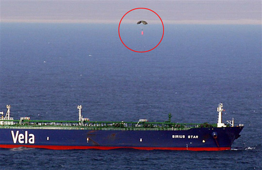 2008年11月15日,索马里海盗劫持了沙特超大油轮“天狼星号”,并扣押23名不同国籍的船员作为人质,勒索的赎金达到350万美元。无奈之下,“天狼星号”用直升飞机于2009年1月9日伞降赎金,这一幕也被美国海军拍了下来。据一些媒体报道,后来海盗因为分赃不均发生争执,造成乘坐的小船倾覆,多人死亡。为了一探事情的究竟,CNN联系了一名生还的海盗。