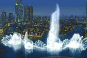 继兴建818米高的“迪拜塔”之后,阿联酋地产巨头艾玛尔地产公司近日宣布,将在这座世界第一高楼附近打造一座世界最大喷泉。该喷泉高150米,长275米,相当于两个足球场长,可以变幻1000种造型,耗资高达2.18亿美元,将于2009年投入使用。一旦竣工,它将成为迪拜市又一地标性景观,预计每年将吸引1000万名国际游客。目前,艾玛尔地产公司悬赏27225美元,为这座喷泉征集“靓名”。