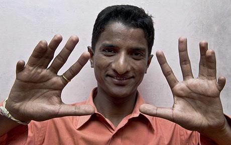 印度一名男子先天畸形,长有12个手指和14个脚趾,这个数字打破了此前同样是一名印度人创造的长有12个手指和13个脚趾的世界纪录。