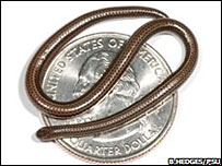 这种蛇全长只有10厘米,厚度象一根宽面条。