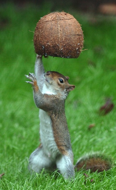 这个“举重高手”是近日在英国费勒姆市的一个花园里发现的。它用力举起椰子的动作神似希腊神话中以肩顶天的巨神阿特拉斯。