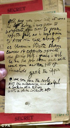 “开膛手杰克”当年写给警方的挑衅信,信中透露了他作案的线索。