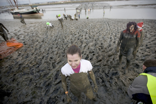 据悉,该项赛事起源于1973年。参加这项运动有一个小窍门,只要在脚上缠许多胶带,泥巴就不会把鞋子吸住。尽管当地寒风凛冽,泥巴冰冷,却挡不住选手们的热情。
