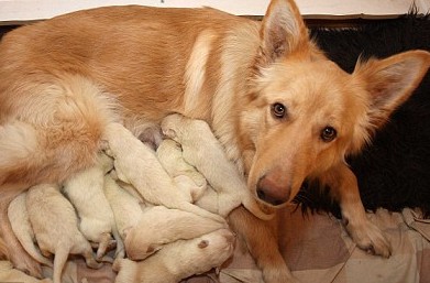 中新网2月4日电 据英国媒体报道,英国拉纳克郡的消防员安德鲁•路易斯日前在帮他三岁的德国牧羊犬莱拉接生产下7只狗崽后,两小时后回家又惊奇地发现,莱拉肚子里还有6只狗崽。