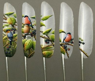 中新网3月25日电 据英国《每日邮报》报道,英国艺术家伊恩•达维在优美的天鹅羽毛上画出精美的图案,令人叹为观止。