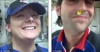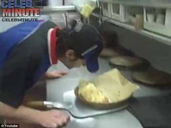 报道称,这两名员工用摄像机进行了自拍,并将录像放到了网上,引起轩然大波。录像中,一名男员工正在做三明治,他把一小块奶酪抹在自己的鼻孔,然后又得意忘形的把这块奶酪放进了三明治中。随后,他还将一段腊肠放在自己的屁股后,疑似在上面放屁。