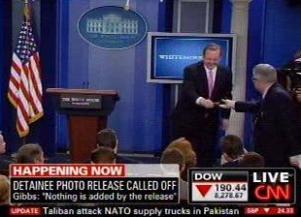 吉布斯在白宫例行记者会上说,奥巴马原来并不反对公布美军虐囚照片,但在听取了驻伊和驻阿美军指挥官的意见后改变初衷。这些指挥官称,公布这些照片可能会激发反美情绪,危及驻伊和驻阿美军士兵安全。白宫方面说,奥巴马政府将向有关法院提出上诉,要求阻止公布这些照片。虽然吉布斯强调奥巴马反对虐囚的基本立场并未改变,而且赞成继续追究在虐囚案件中有不法行为者的责任,但奥巴马的这一决定仍遭到许多人的质疑。
