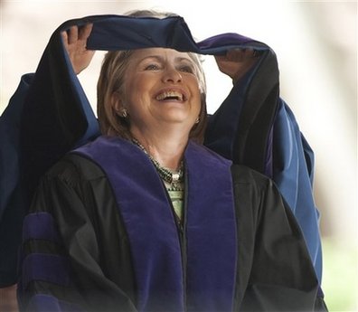 中新网5月26日电 据美联社等媒体消息,美国国务卿希拉里当地时间25日访问母校耶鲁大学,获得荣誉学位。