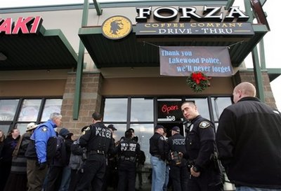 中新网12月14日电 据美联社报道,美国西雅图附近在上月29日发生重大袭警案,造成4名警察死亡,凶手已被警方击毙。而发生枪击案的咖啡馆也于近日重新营业,生意不错。
