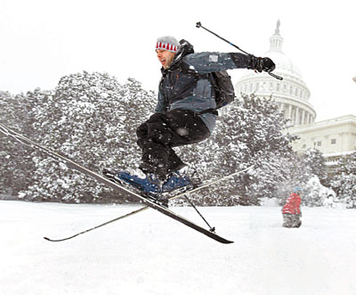 华盛顿地区刮起时速40英里的寒风,使白雪在空中乱飘,冷风效应更使气温降至约摄氏零下6度。气象专家称,华盛顿的大雪达40厘米,是自1932年以来12月的最大降雪量。美国总统奥巴马前日凌晨乘专机从哥本哈根返回华盛顿,在抵达华盛顿市郊的安德鲁斯空军基地时遇上了大雪。由于天气十分恶劣,奥巴马改为乘坐专车返回白宫,而不是按惯例坐“海军陆战队一号”直升机。纽约亦受暴风雪吹袭,昨天早上积雪达28厘米,一班列车受风雪影响中途停驶,150名乘客一度滞留车厢内5小时。