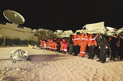 中国国际救援队队员于海地时间14日凌晨抵达联海团总部大楼营救现场后,已夜以继日地奋战了几十小时。