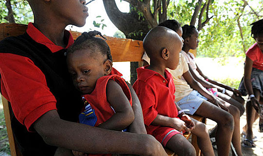 1月31日,一名被拐卖的儿童(左)获救后来到海地首都太子港附近的国际SOS儿童村。