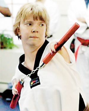 三年前,瑞德兹维奇来到马萨诸塞州一家武馆学习跆拳道。虽然没有前臂,可是瑞德兹维奇却能借助牙齿和残肢的辅助作用,将一对双截棍舞得虎虎生风。至于脚劈木板的表演,对她更是小菜一碟。有趣的是,虽然练就一对“旋风腿”,可是瑞德兹维奇却不愿以一副“女金刚”的形象示人,天性爱美的她甚至不忘在残缺小手的10个手指甲上都涂上鲜红的指甲油。
