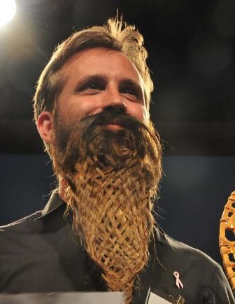 中新网5月26日电 综合外电报道,世界胡须大赛日前在阿拉斯加安克雷奇举行,来自世界各地的参赛者们在这里展示他们的个性胡须。经过几轮的激烈比拼,来自阿拉斯加安克雷奇的David Traver (如图)以他奇特的编织胡须赢得了冠军。