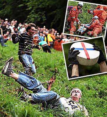中新网5月27日电 据香港大公网报道,英国格洛斯特郡25日举行一年一度的“追芝士比赛“。这项赛事已有数百年历史,比赛规则十分古怪,参赛者要站在库珀山山顶,沿山坡追逐滚下山的一块芝士,今年有58人受伤。