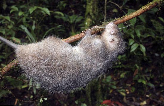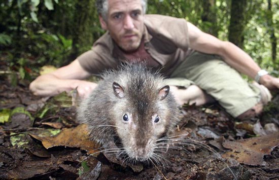 在巴布亚新几内亚偏远的博萨维山区(Mount Bosavi),科学家们发现了自20万年前火山爆发后,一片与世隔绝的生物栖息地。在这片神秘的栖息地上,科学家们找到了一种哺乳动物的新品种:博萨维毛鼠(Bosavi Woolly Rat)。作为目前世界上体型最大的老鼠之一,它的外貌与普通老鼠差别不大,从头到尾长约87厘米,重逾1.3公斤。这种老鼠有着银灰色的厚皮毛和尖利的牙齿,基本吃素,可在树洞或地底建立巢穴。并且,这种老鼠是“友好”物种,十分“令人难以置信的”温驯。科学家发现它时,它正在啃食一片叶子。科学家感叹地表示:“它从没看到过人类。博萨维火山口真是与世隔绝。”