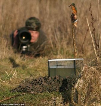 由于翠鸟的速度惊人、动作灵巧,而且水中的光线较不足,一般来说,要拍摄翠鸟捕鱼的照片一点也不简单。幸好聪明的业余摄影师艾德里‧安格罗夫斯懂得略施小计,在水池边放了一个玻璃缸,里面放入几条鲰鱼,设法引诱翠鸟猎食,再伺机拍摄翠鸟捕鱼的精彩瞬间。