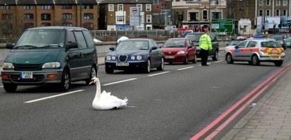 中新网3月9日电 据英国《每日邮报》8日报道,英国伦敦交通堵塞是常事,但是这次大堵车的原因竟是因为一只天鹅来到道路中央,迟迟不肯离去。天鹅赶不走,人们不得不停下车来等待了一个多小时。