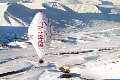 中新网4月12日电 据香港《文汇报》12日报道,法国极地探险家艾蒂安前日完成人类史上首次乘坐热气球(图)飞越北极的探险之旅。艾蒂安上周一从挪威起飞,经过5天1小时30分,飞行了3130公里,途中遇过大风雪,最终在西伯利亚地区安全着陆。