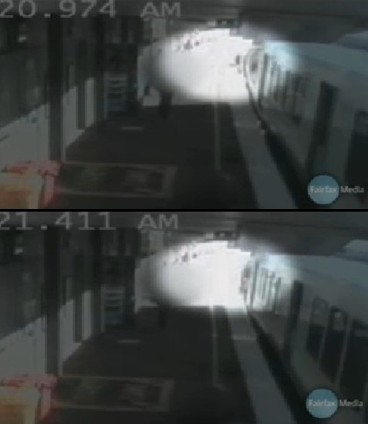 站台上,婴儿和祖母以及乘客们都被这一幕惊呆了,目瞪口呆,过了一会儿才知道朝站台边缘跑去。