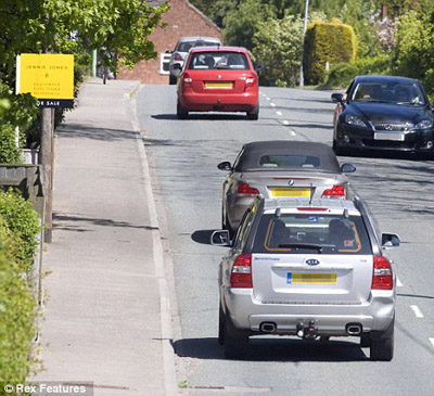 中新网5月26日电 据英国媒体报道,英国一家房地产商将广告牌设计成醒目的黄底黑字,酷似黄盒子内安装了测速照相机,过往车辆路过都会刹车,减速通过。