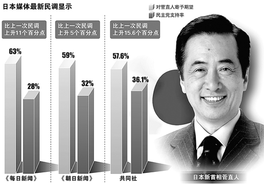 如果说去年9月民主党实现政权更迭是日本政治的历史性转折,那么今年6月民主党再次组阁则是摆脱该党颓势的重要转折。近日,日本多个民调显示,民主党的支持率正迅速大幅回升。