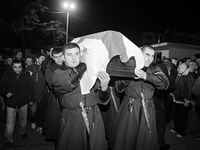中新网2月20日电 据外电报道,在温哥华冬奥会中不幸丧生的格鲁吉亚雪橇运动员库马里塔什威利的灵柩于18日回到了家乡。格鲁吉亚的许多机构都降半旗向英雄致哀。