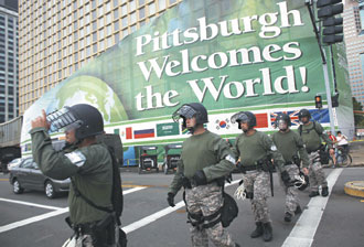 据当地警方介绍,为确保二十国集团金融峰会的安全,有关方面部署了将近5000人的警力,其中包括约2500名国民警卫队员、1200名州警、870多名匹兹堡市警员以及其他执法人员。