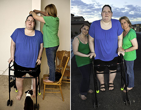 这名来自内华达州的女子有着6尺6英寸的身高,体重高达476磅。然而,她还在不停长大。