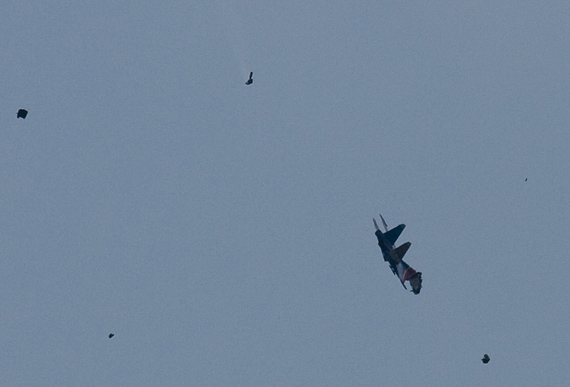 16日,“俄罗斯勇士”飞行表演队两架“苏-27”在莫斯科州的茹科夫斯基市上空进行飞行训练时相撞后坠毁。三名飞行员均成功弹射出战机,但其中的上校特卡琴科因降落伞没有打开身亡。撞击后,一架战机撞倒地面建筑起火,导致地面8人受伤。