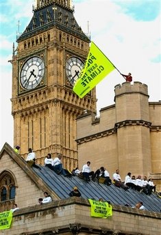 去年,英国反对希思罗机场扩建的活动人士也曾经爬上议会大厦楼顶抗议示威。后来,五名示威者被判“非法进入他人地界”。此前,议会大厦还曾经发生过多起治安措施被突破的抗议活动。绿色和平组织就曾在2004年爬上大笨钟钟楼示威。